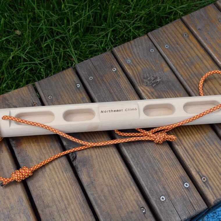 No drills, Just bring it and hang everywhere. Portable climbing hangboard is a simple yet effective device to train and warm up before your climbs. You can hang it wherever you need and you can use the holes to train your finger strength.